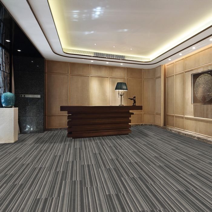 Bring modern sophistication to your floors with Graphic Dark Grey Carpet Tiles. Designed with a 1/10″ level cut loop pile and cushioned backing, these tiles offer long-lasting durability, comfort underfoot, and superior sound absorption. The tonal striped pattern adds depth and elegance to any layout, from brick to herringbone.