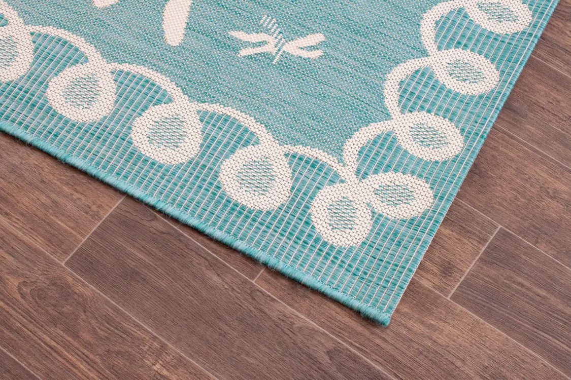 Terrace Dragonfly Teal Outdoor Rug – Stylish & Easy Care